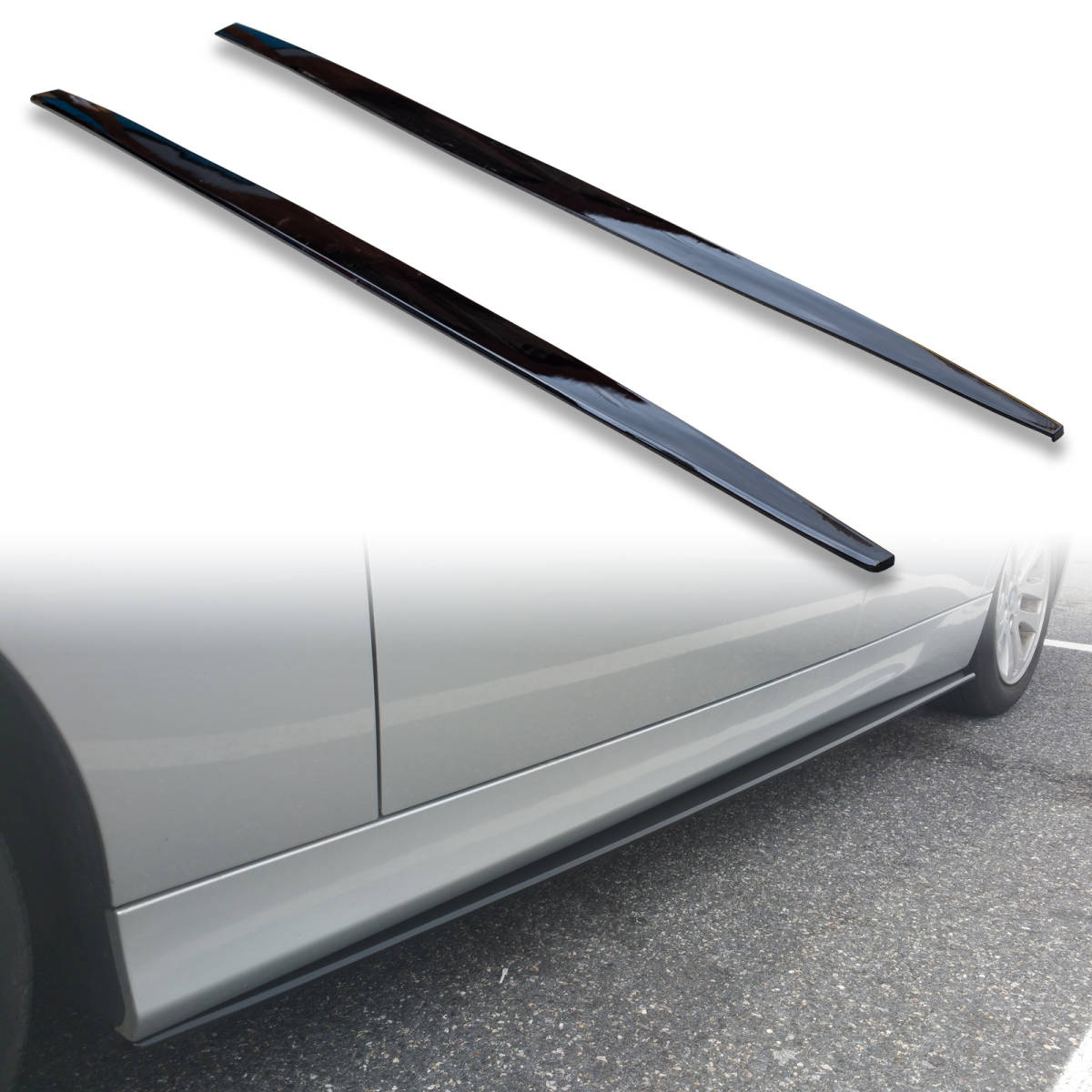 - [FYRALIP]サイドエクステンション サイドスカート スポイラーフラップ BMW用 3シリーズ E90用 2005-2011 PU製 艶あり黒