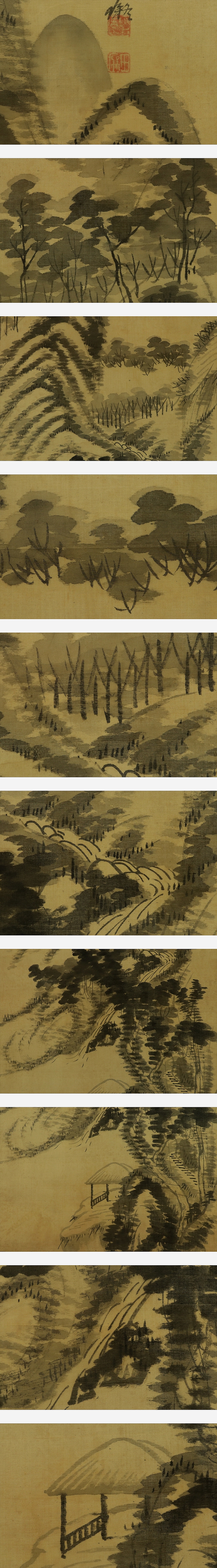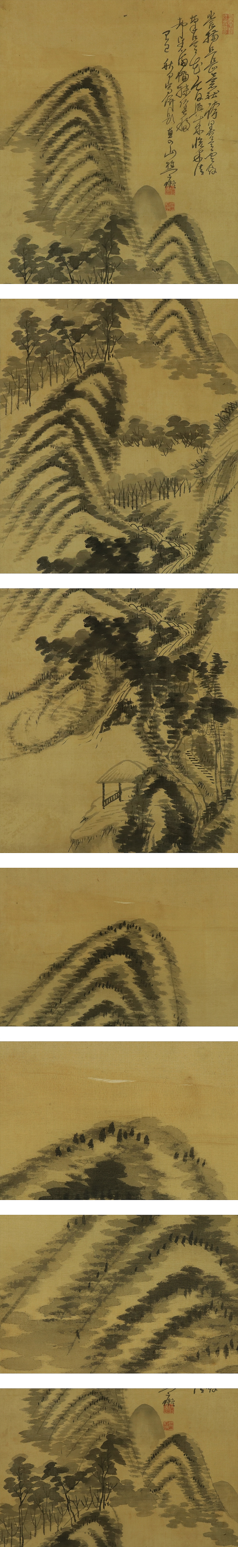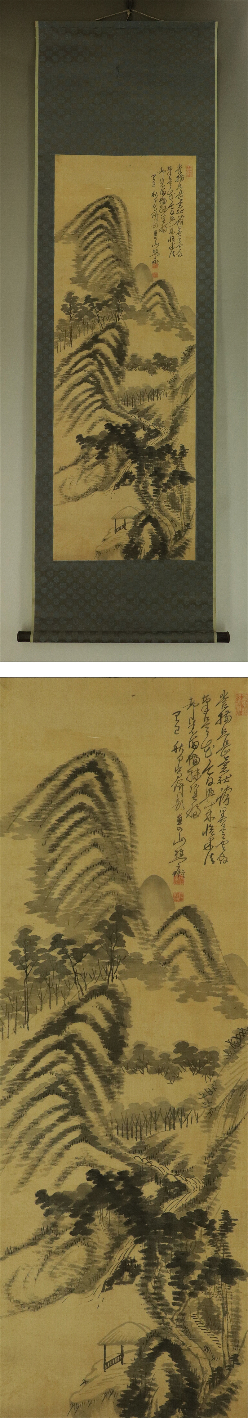 - 【真作】田能村直入【米法山水】◆絹本◆合箱◆掛軸 t06037