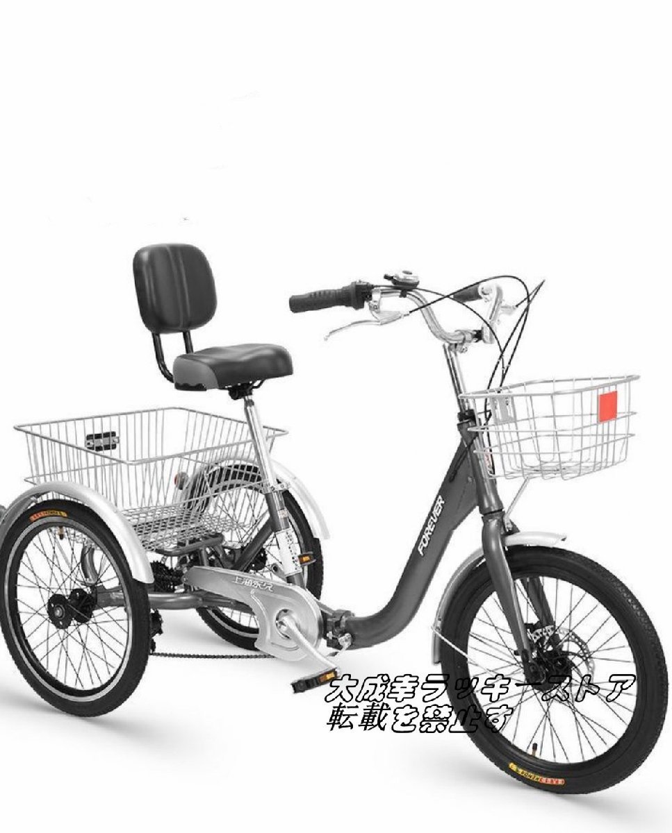 - 極上品☆大人用高齢者用 折りたたみ式三輪車 7スピード 女性男性 20インチショッピングバスケット付き 調節可能な背もたれシート 153
