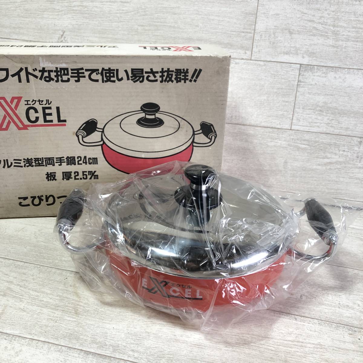 - ■未使用 Excel アルミ 浅型 両手鍋 24㎝ NAKAKO 赤 レトロ 長期保管品 調理器具■サ3