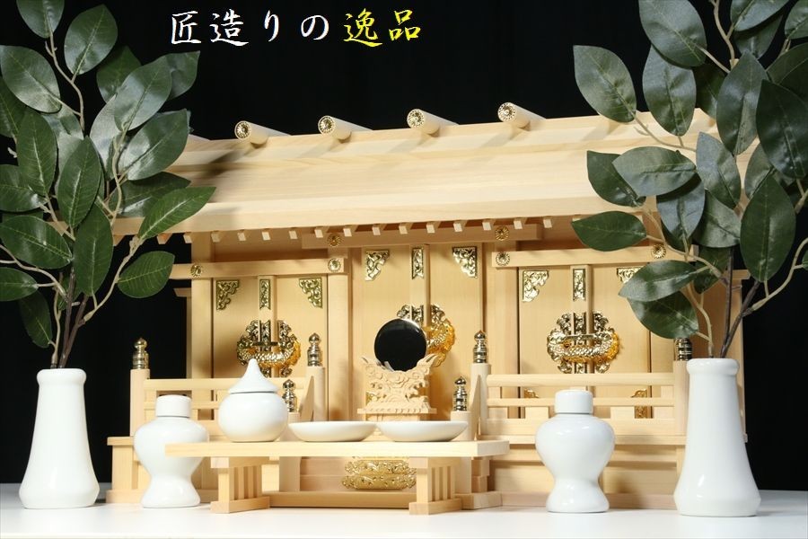- 匠造り ■ 木曽ひのき ■ 低床 ■ 通し屋根 三社 ■ 神具逸品 神棚セット
