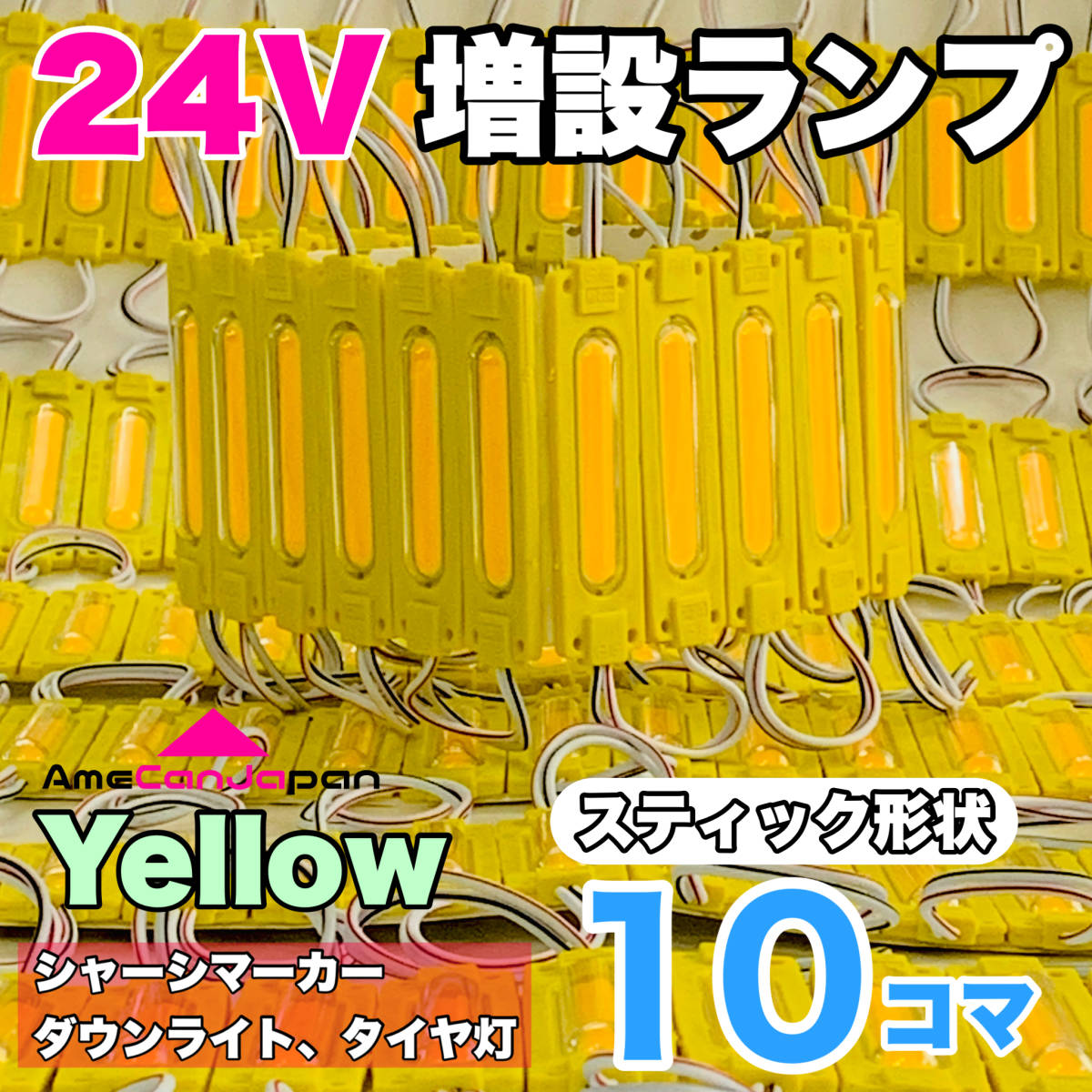 > ◇10コマ◇スティック形状 24V トラック ダンプ LED シャーシマーカー タイヤ灯 作業灯 路肩灯 パッチマーカー 黄色 イエロー AmeCanJapan
