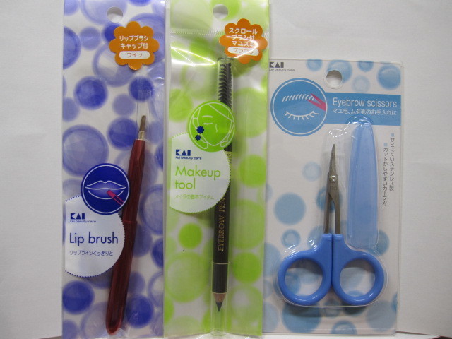 - 送料無料 貝印3種類 マユズミ 貝印(KAI)ブラウン 茶 スクロールブラシ付 ハサミ リップブラシ