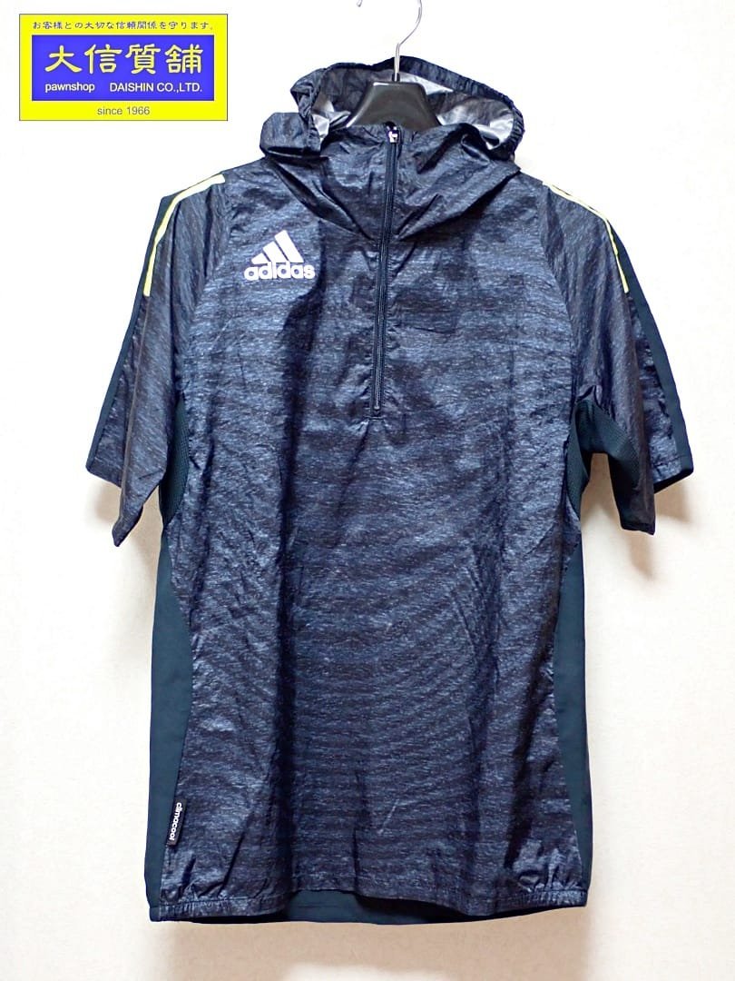 - ADIDAS アディダス CLIMACOOL o caminho para o brasil 半袖 フーディ ハーフジップパーカー XS ネイビー 中古B+ 【送料無料】 A-8020