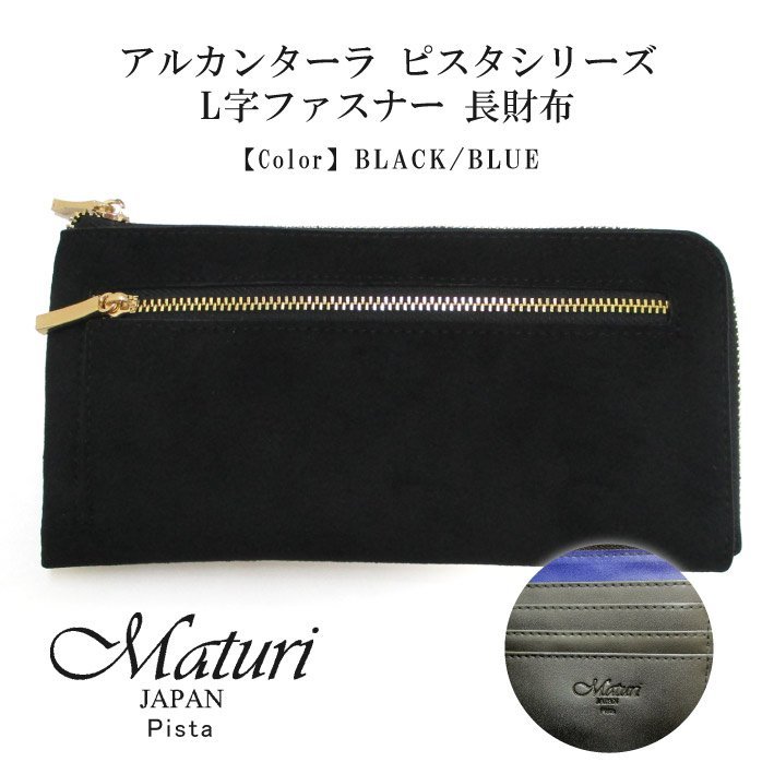 - 【Maturi マトゥーリ】 アルカンターラ ピスタシリーズ L字ファスナー 長財布 薄型 本革 MR-100 BK/BL 定価28000円 新品