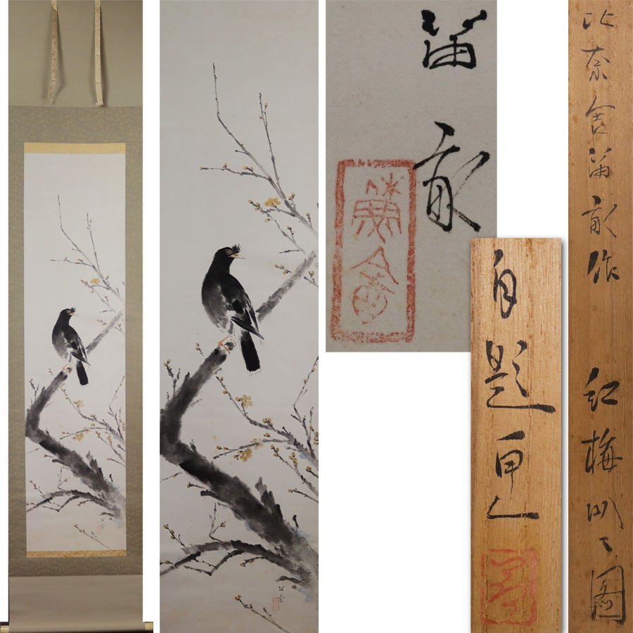 - 《源》【即決・送料無料】西沢笛畝 筆 紅梅八哥鳥図/共箱付