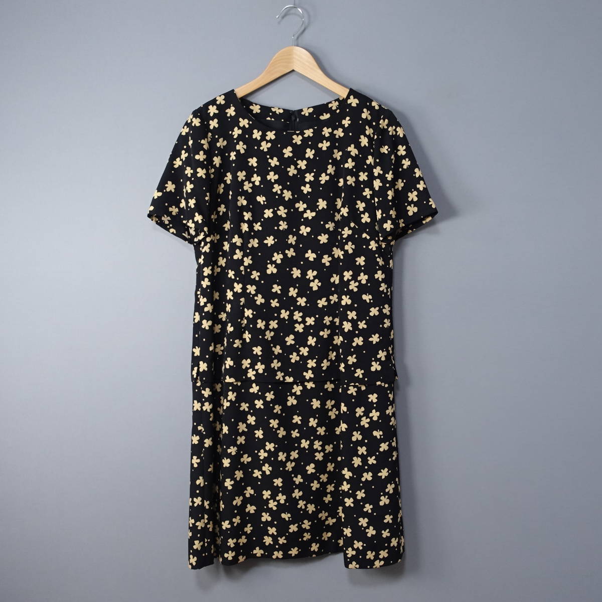 > 美品*Leilian/レリアン/13/日本製/花柄ワンピース/ブラック×ベージュ/黒/レディース/大きいサイズ