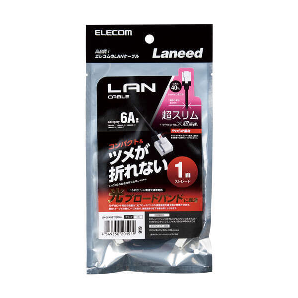 - Cat6A準拠LANケーブル スリムタイプ 1.0m 配線に最適なスリムケーブルとツメが折れにくいコネクター採用: LD-GPASST/BK10