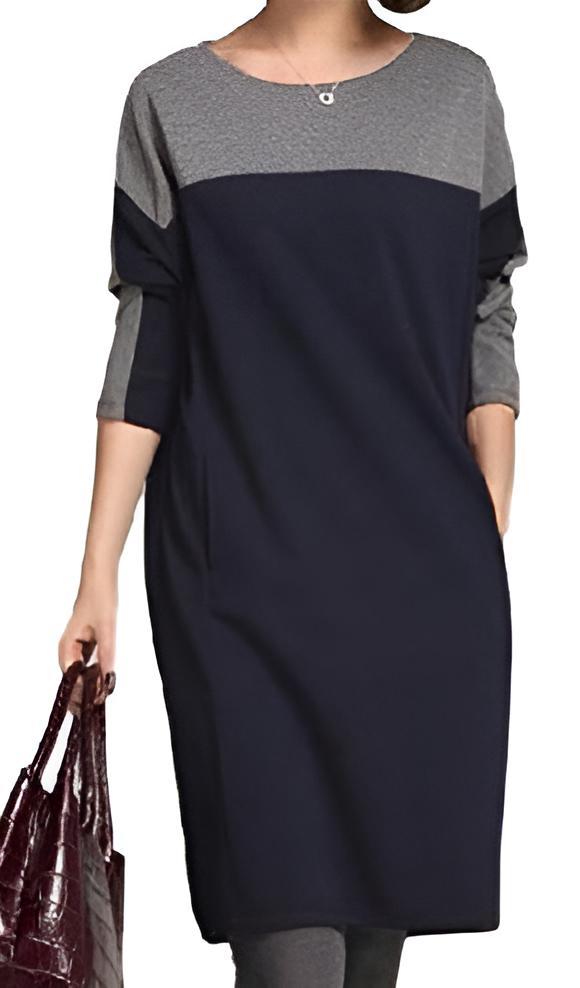 - 41-2.上品 きれいめ 長袖 ワンピース レディース シンプル バイカラー ドルマン袖 チュニック ミニ丈 S