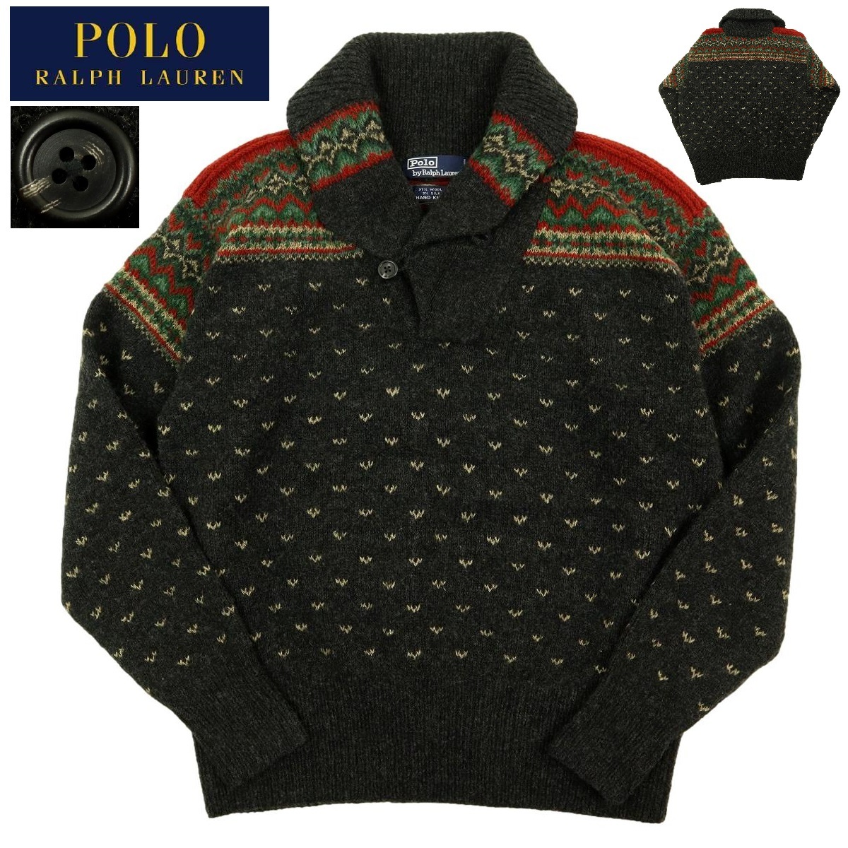 - 【B2410】【未使用】【90年代】【ナイガイ】POLO RALPH LAUREN ポロラルフローレン ショールカラーセーター シルク混 フェアアイル柄
