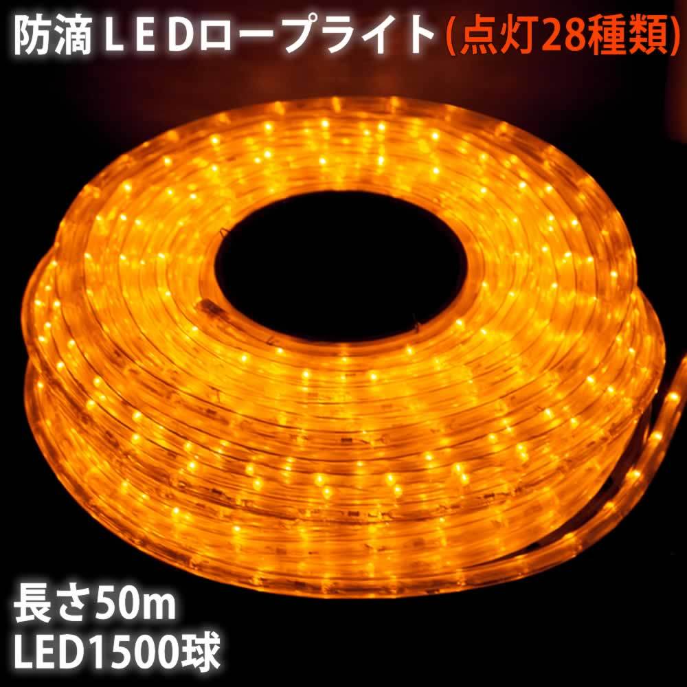 > クリスマス 防滴 LED イルミネーション 2芯 丸型 ロープライト 50m ゴールド 28種点滅 Bコントローラセット