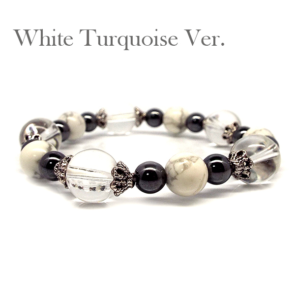 > パワーストーン デザイン ブレスレット 五芒星 ペンタグラム ホワイトターコイズ 天然石 原石