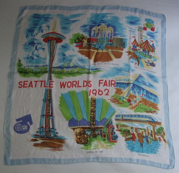 - VINTAGE SEATTLE WORLD'S FAIR 1962 スーベニア 大判 スカーフ ビンテージ 万博 60s Space Needle スペースニードル アメリカ古着 難あり