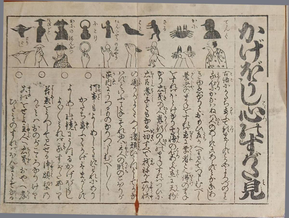 > f230900718〇一枚刷り 浪花みやげ第2編第2集 かげぼうし心の姿見 ことば遊び しゃれ なぞ 判じ絵 見立番付 天保年間 塩屋喜兵衛板