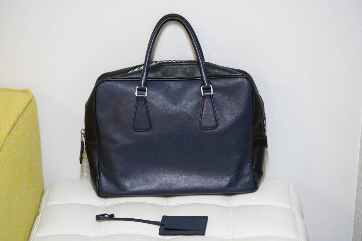 - PRADA プラダ レザー ブリーフケース サフィアーノ ビジネスバッグ 書類バッグ ハンドバッグ ネイビー ブラック バイカラー シルバー金具