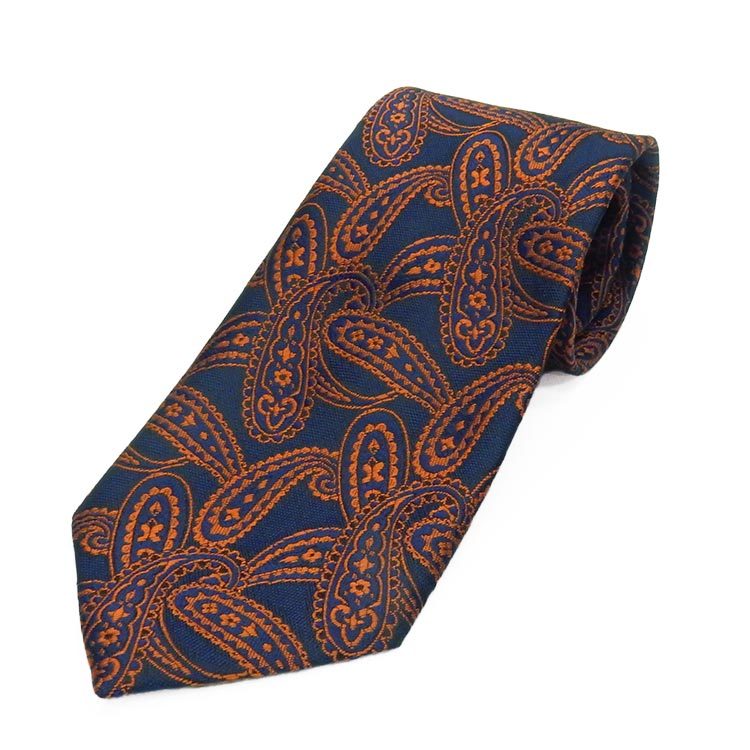 - 日本製 ネクタイ 甲州織 紺×赤橙/ペイズリー 帝人 テトロン糸使用 洗濯機OK メール便OK BUN-PZ06