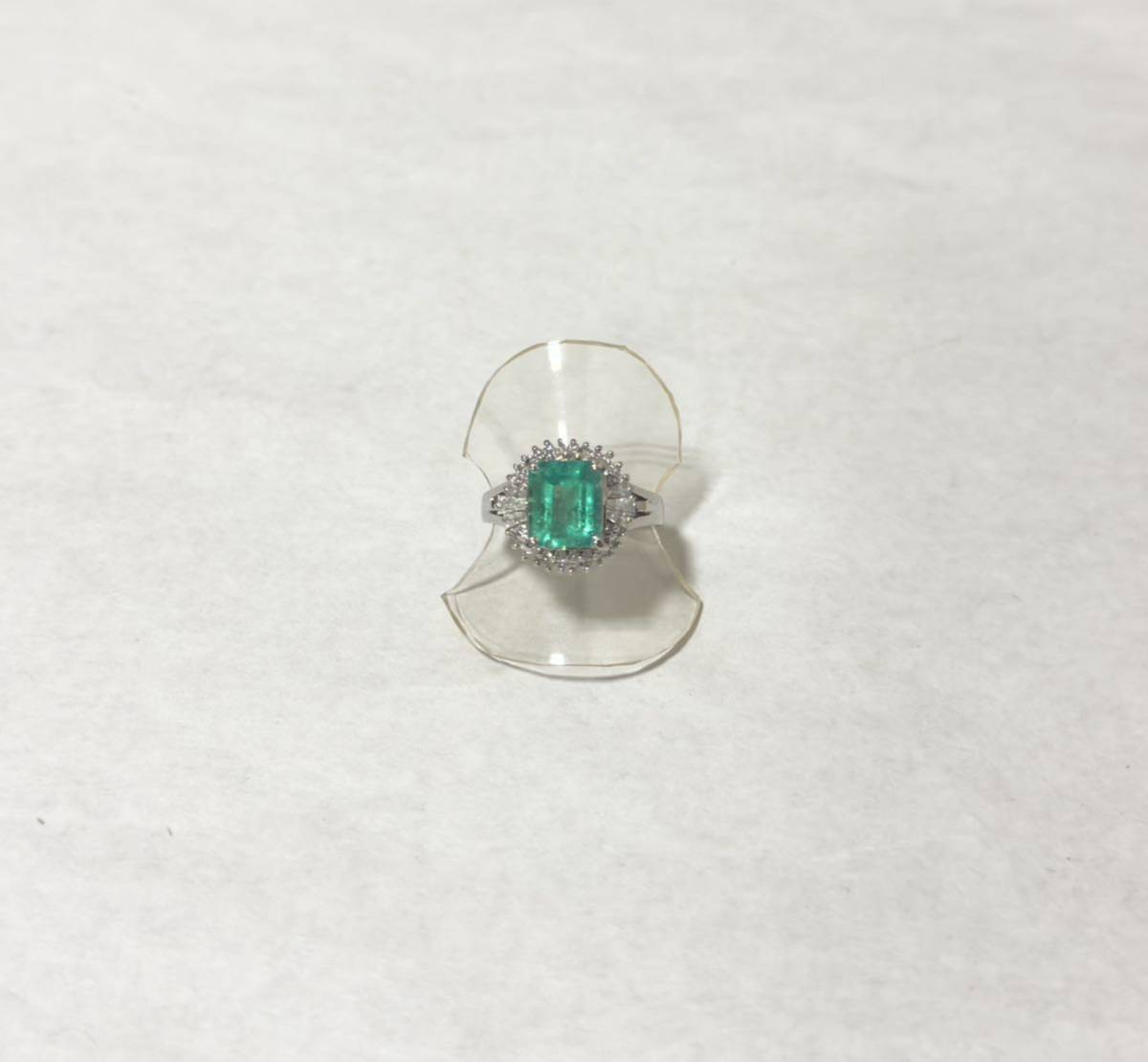 - 【質屋 尾張屋商店 東京】 ☆鑑別結果付☆ Pt900 エメラルドダイヤモンドレディースリング #13 2.3ct 天然ベリル