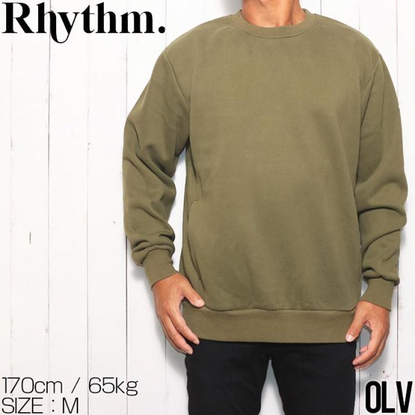 - 【送料無料】クルーネック トレーナー スウェット Rhythm リズム CLASSIC FLEECE CREW CL22M-FL02 OLV X Lサイズ