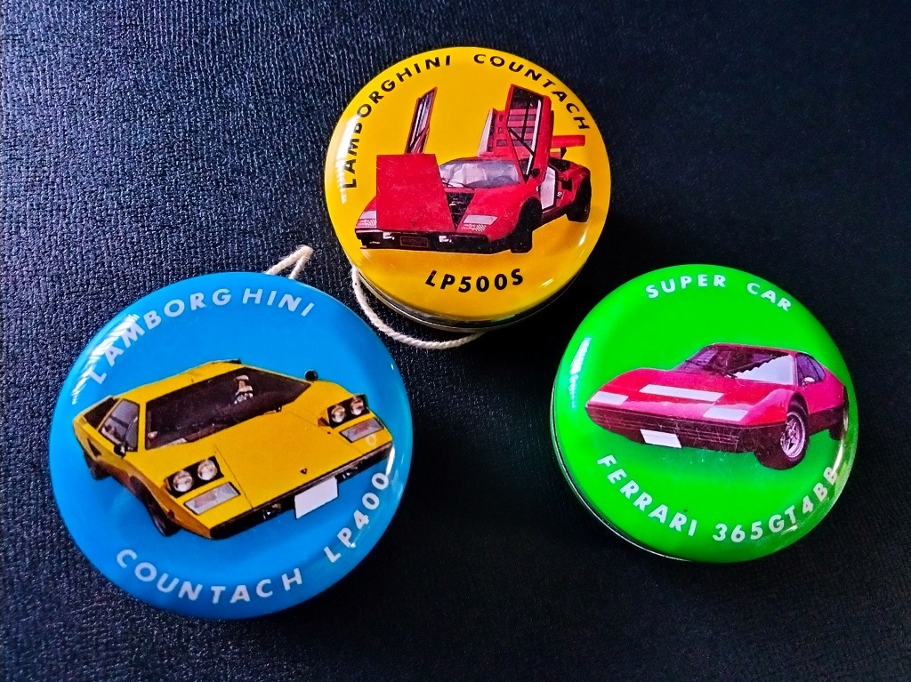 - '70s スーパーカー ヨーヨー 当時物 未使用 3個セット カウンタック ベルリネッタボクサー !! ☆ ブリキ ランボルギーニ フェラーリ BB