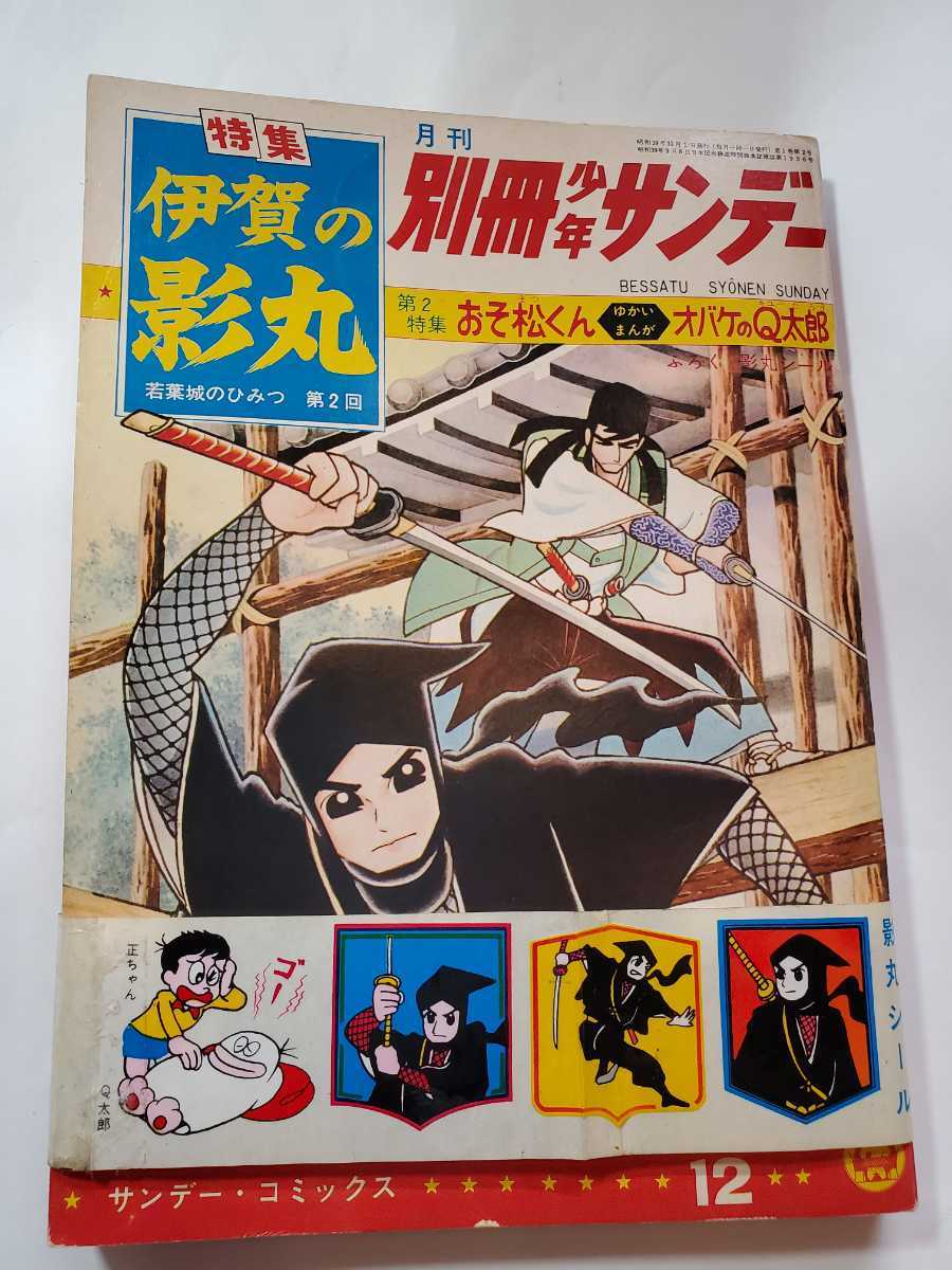 > 7369-10 T 超貴重シール付き 別冊 少年サンデー 1964年 12月号 伊賀の影丸 少学館 若葉城のひみつ 第2回 美品