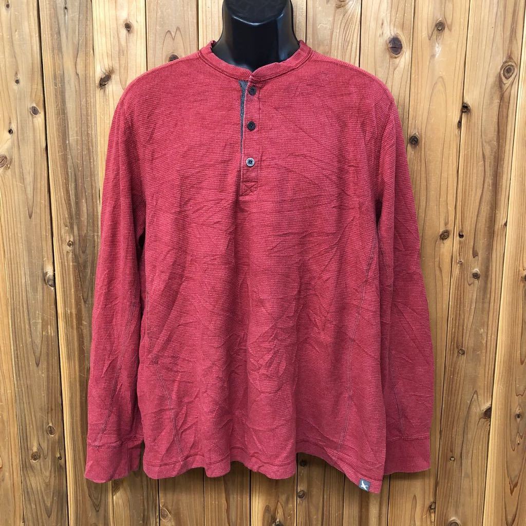 - Eddie Bauer /エディーバウアー /メンズL 長袖 ヘンリーネックTシャツ ワッフルTシャツ トップス 赤 リブ袖 アメカジ アウトドア USA古着