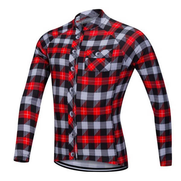 - 新品 長袖 サイクルジャージ No23 Lサイズ チェック フルジップ ウェア メンズ ロング サイクリング スポーツ ロードバイク MTB