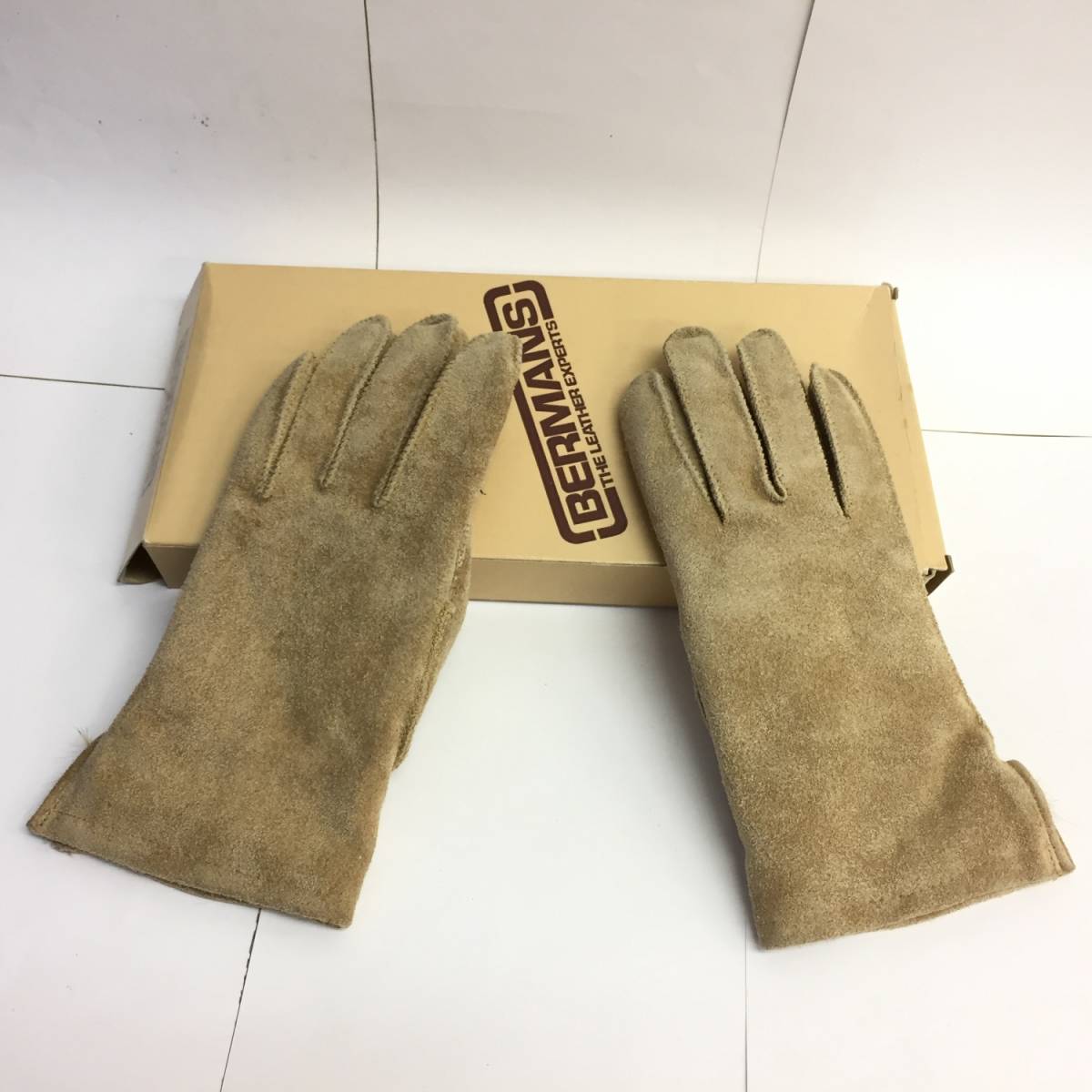 > [手袋] ファッション小物「BERMANS」女性用 Mサイズ 本革 レザー バーマンズ モカ系の色合い 内側にファーのような毛 ふわふわ 匂いあり