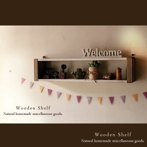 - [送料無料]アンティーク風 ウォールシェルフ 木製 棚 ホワイト&ウォルナット