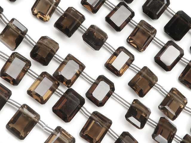 - スモーキークォーツ レクタングルファセットカット 8×6mm[プレミアムカット]【1連販売】 / 9-125 SM8LG