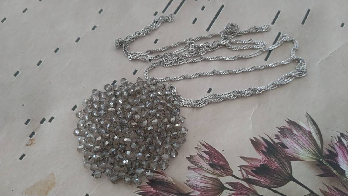 - 煌めく輝き 多面カットクリアグレービーズ サークルモチーフ ネックレス