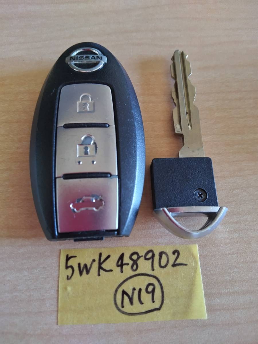 - 送料無料!日産純正 スマートキー 3ボタン 5WK48902 スカイライン フーガ ティアナ インフィニティ トランク キーレス (N19)