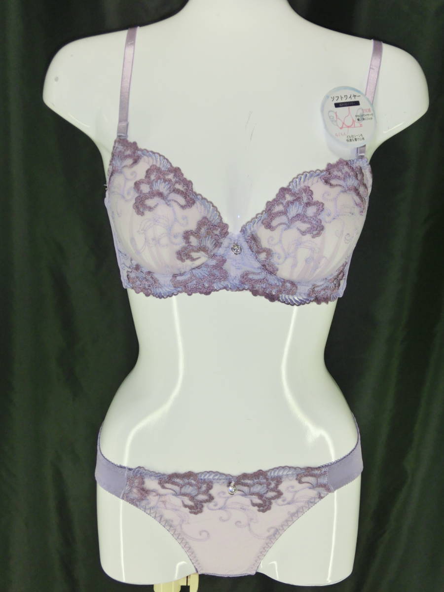 > ☆【C75 L】パープル エレガント刺しゅうブラジャー・ショーツセット(ソフトワイヤータイプ)《56-4》