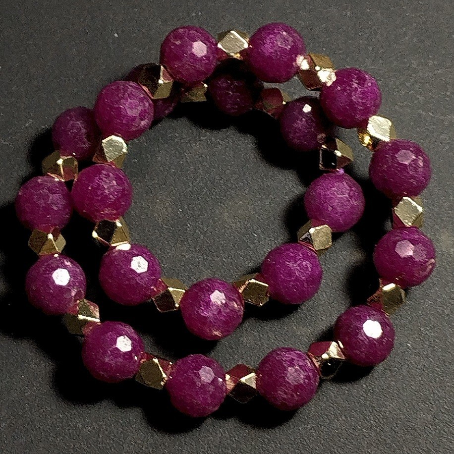 - ミラーボールカット ルビー 14kgfパーツ ブレスレット 17cm