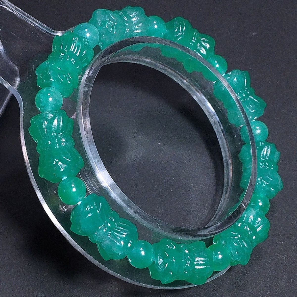 - アマゾナイト 双頭蓮 ブレスレット ロータスカット 蓮彫り 蓮彫刻 16cm