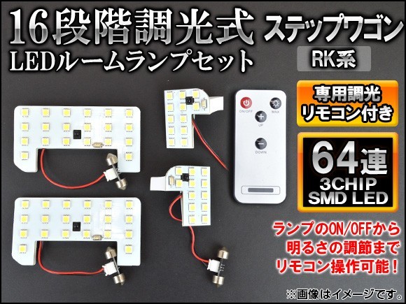 - LEDルームランプセット ホンダ ステップワゴン RK1,RK2,RK5,RK6 2009年10月~ 64連 16段階調光式 リモコン付き AP-SRL-H20-64