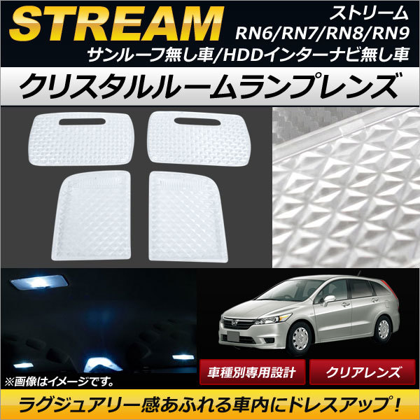 > クリスタルルームランプレンズ ホンダ ストリーム RN6/RN7/RN8/RN9 サンルーフ無し車/HDDインターナビ無し車 クリア