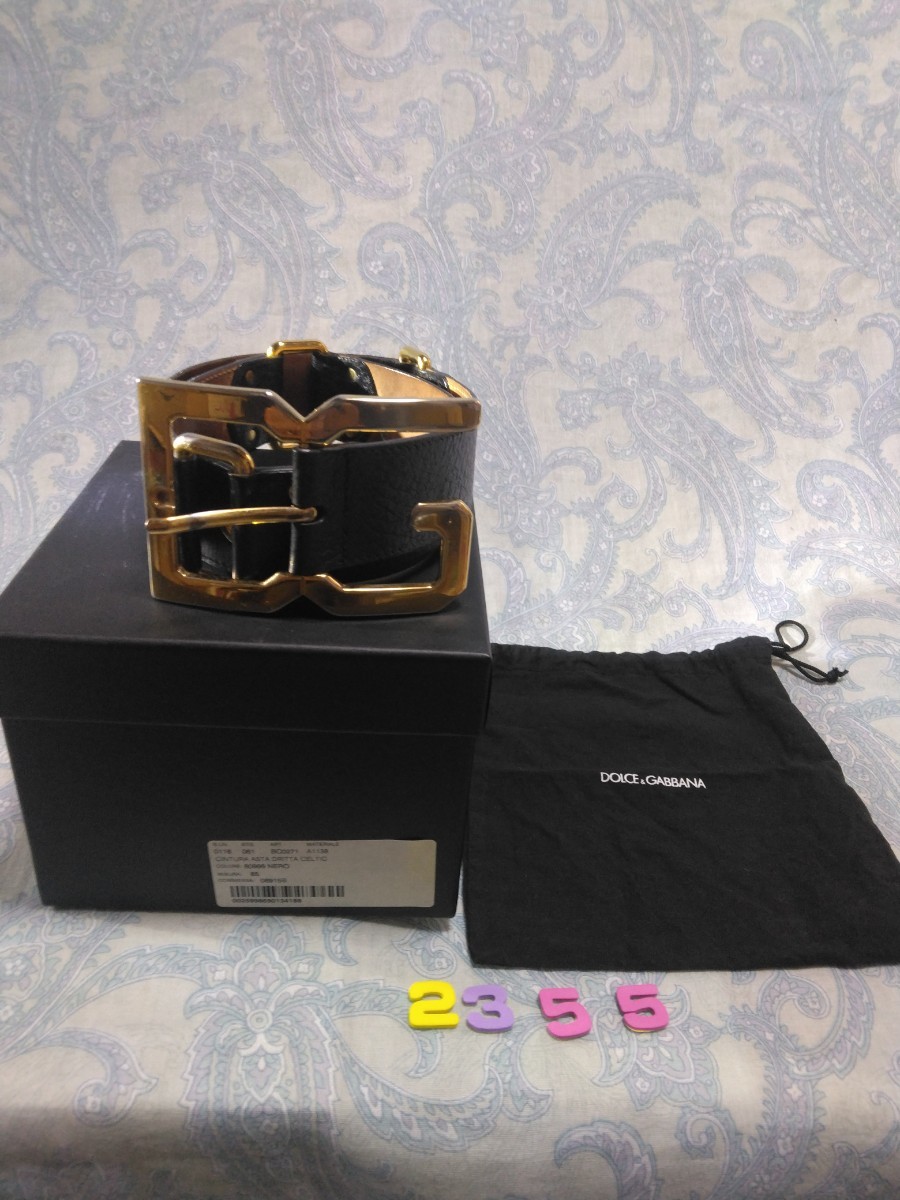 - 2355!ドルチェ&ガッバーナ金色ロゴバックルの丸スタッズつき黒色レザー連結ベルトイタリア ミラノジャパン