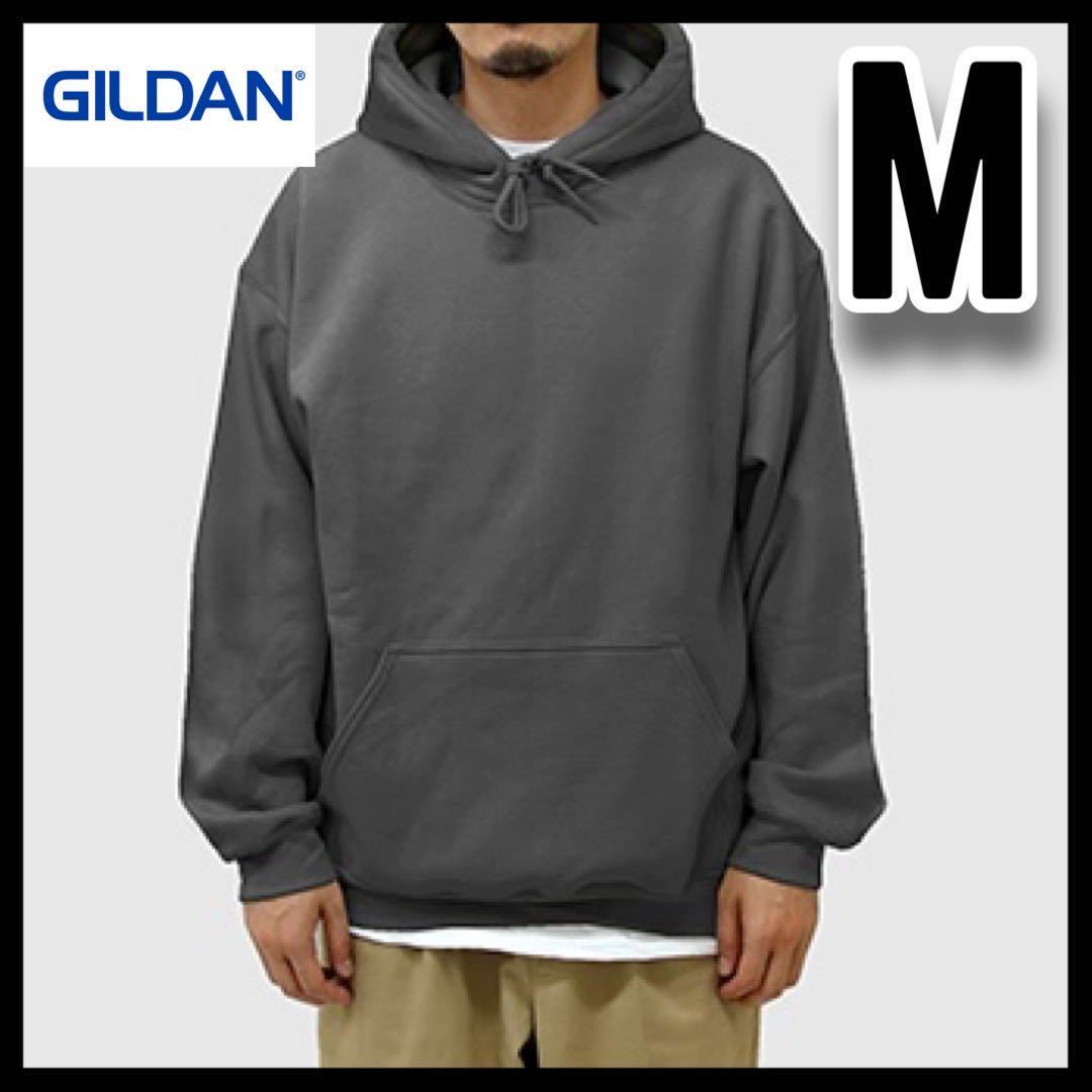 - 新品未使用 GILDAN ギルダン 8oz プルオーバーパーカー 無地かぶりパーカー 裏起毛 チャコール Mサイズ ビッグシルエット フーディー