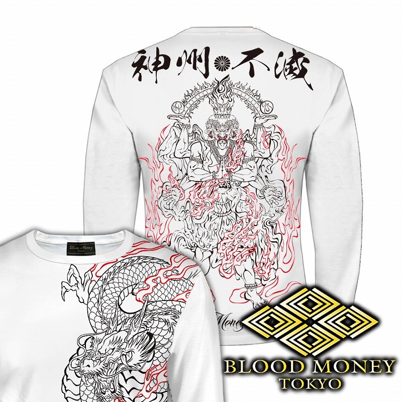 - 長袖 Tシャツ ロンT 服 BLOOD MONEY TOKYO 龍 阿修羅 炎 和柄 mbt-23008 白 黒 メンズ ファッション ヤクザ ヤンキー オラオラ系 派手