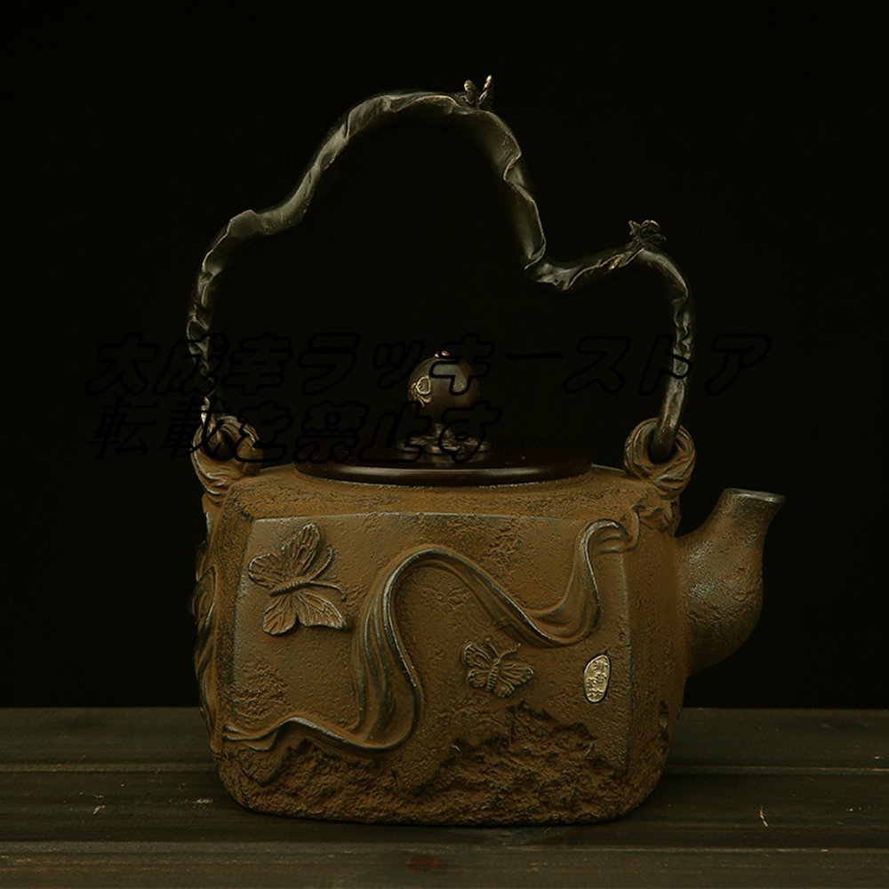 - ハンドメイド 塗装なし 茶壺 提梁壺 煮茶壺 茶道具 職人作り 鉄びん 鉄分補給 鉄瓶 焼かん z938