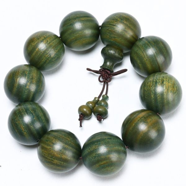 - [EasternStar] 海外発送 アメリカ 緑檀 グリーン サンダルウッド ブレスレット お守り 数珠 念珠 25mm 10玉 小孔 ひょうたん