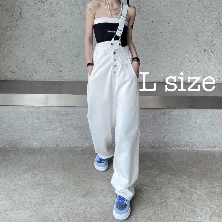 - ワイドパンツ サスペンダー ハイウエスト ボトムス サロペット L