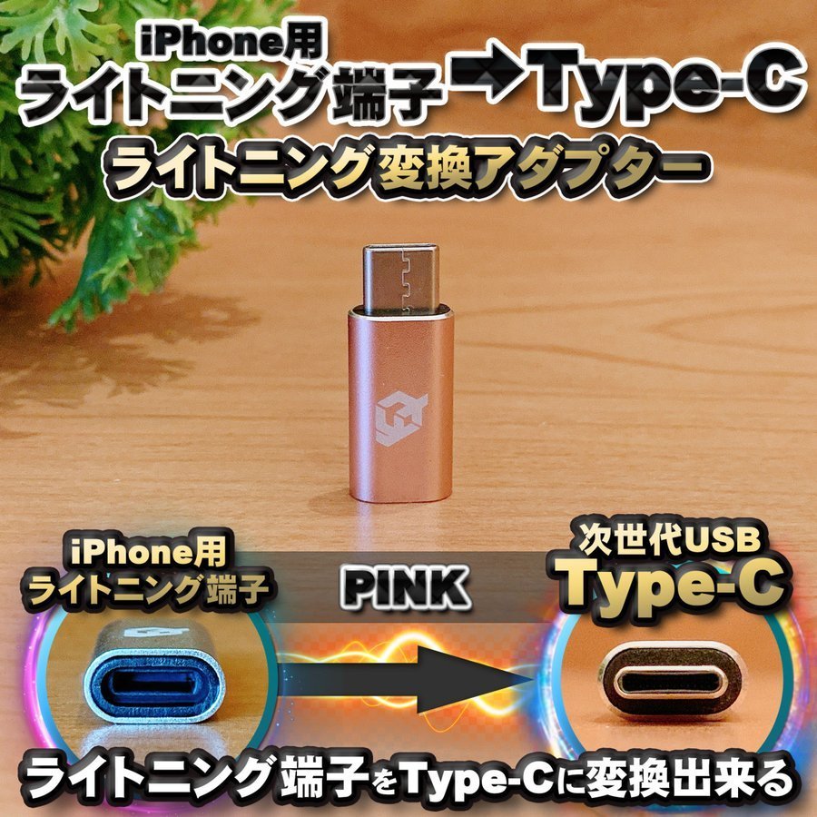 - iPhone用 ライトニングケーブル → USB Type C 端子 に変換する アダプター x1 【ピンク】
