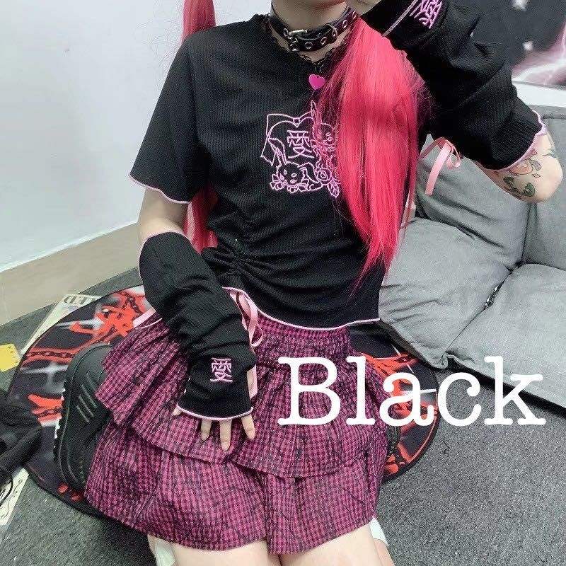 - Tシャツ ロングTシャツ トップス ロンT アームカバー 黒 ブラック M