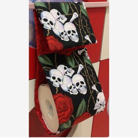 - スカル柄トイレットペーパーホルダーカバー スカル柄 髑髏柄 ドクロ柄 トイレ用品