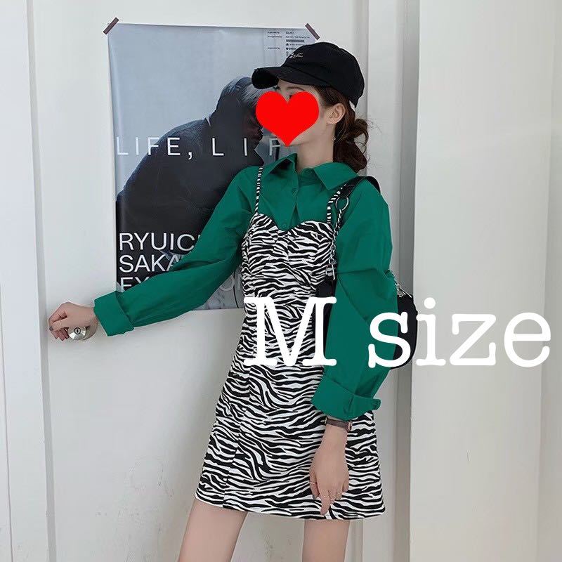 - シャツ キャミソール 2点セット セットアップ キャミワンピ 緑 グリーン ゼブラ M