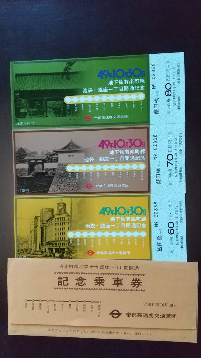 - 地下鉄有楽町線記念乗車券(池袋~銀座一丁目間開通記念乗車券)