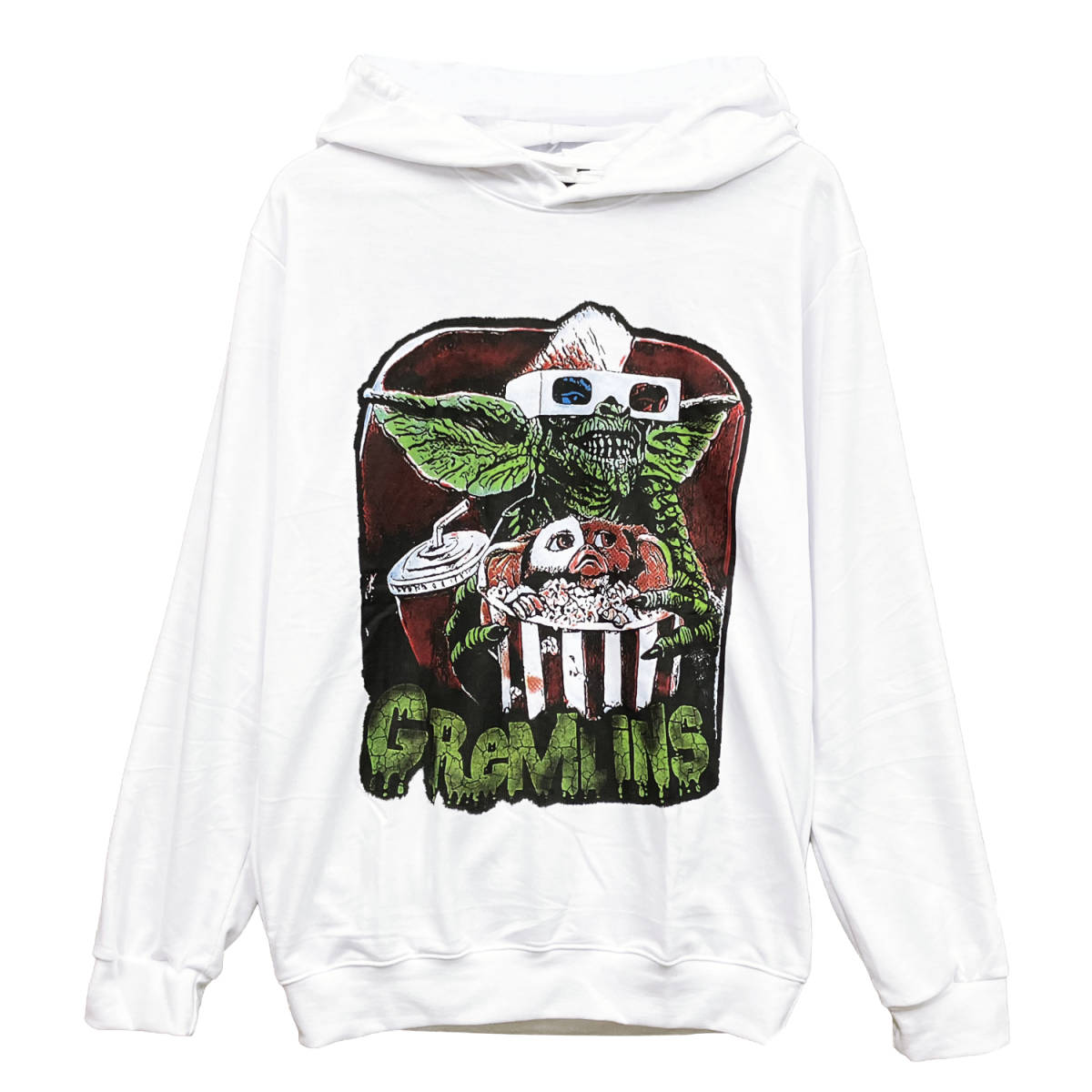 > プルオーバーパーカー グレムリン ギズモ ストライプ 映画 ストリート系 カワイイ スウェット フード付き 薄手 春秋物 ★pk0095-wht-m