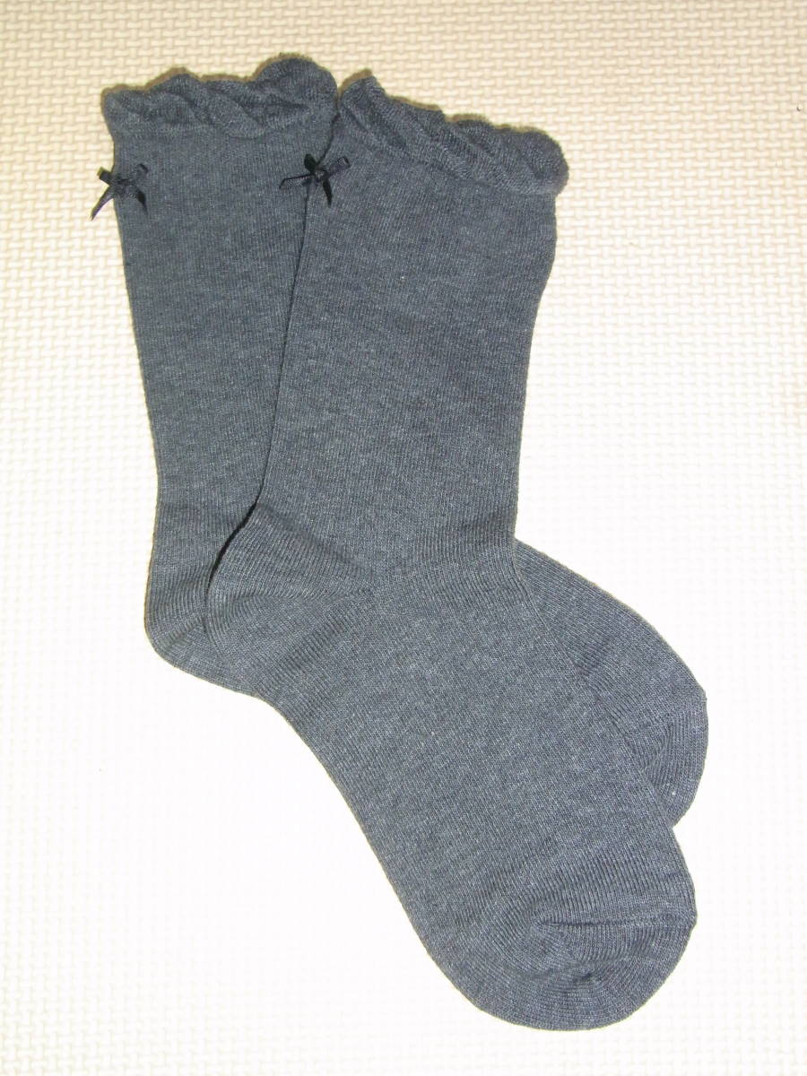 - ★美品★可愛い女の子★リボン★グレー色★ソックス★靴下★サイズ22cm★日本製★