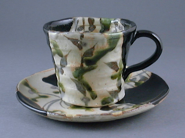 - 美濃焼! 玉山 ☆黒織部・コーヒー碗皿☆ C62 新品 碗皿 コーヒー 紅茶 ミルク ギフト